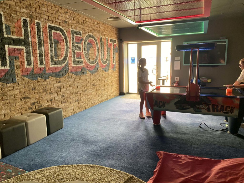 With lots of comfortable seating and a large TV for movie screenings it was the air hockey table that was a favourite with our girls.