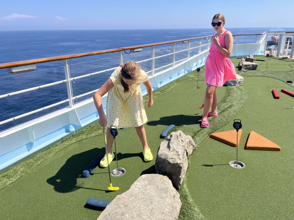 On deck 12 you will find the 14 hole mini-golf course offering incredible views of the ocean. This was another favourite spot for the girls especially when they were challenging us to a golf challenge – it felt surreal playing mini golf in the middle of the ocean.