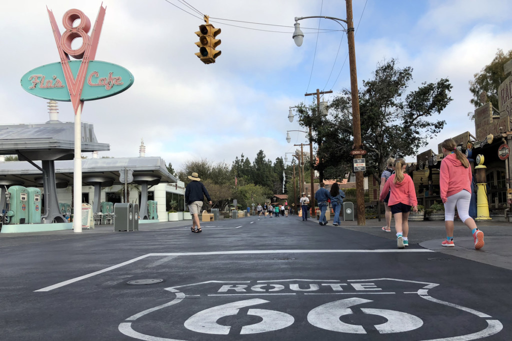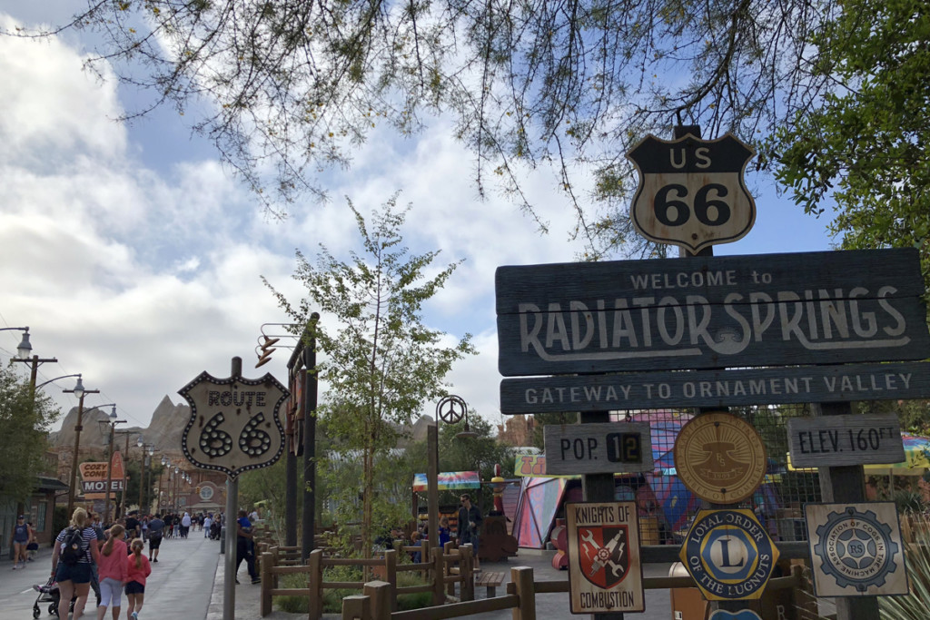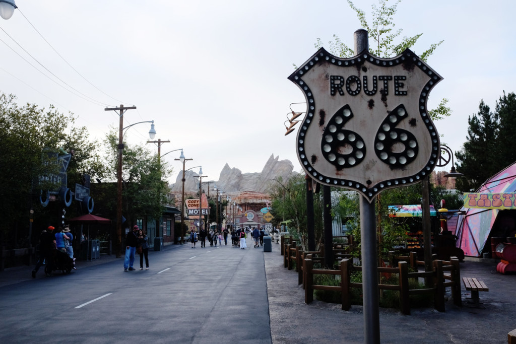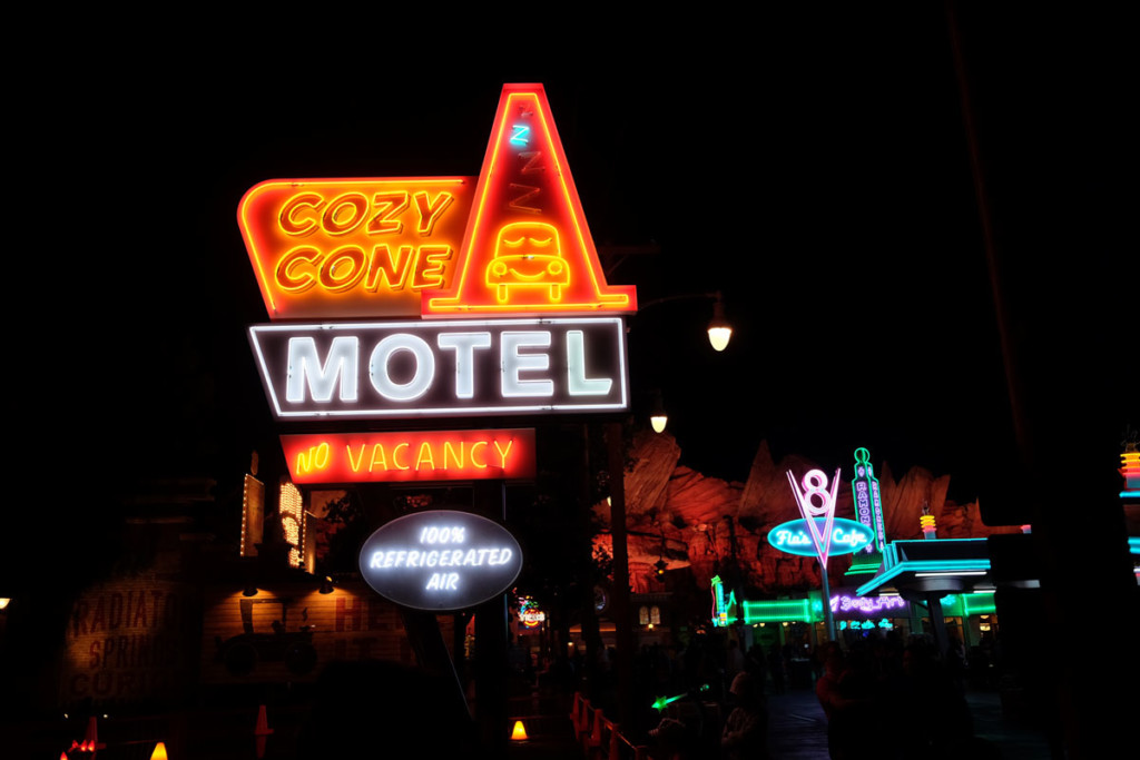 The theming of this land is so impressive it was like walking onto the movie set with signs for Route 66, Flo’s V8 Café, the Cozy Cone Motel and more.