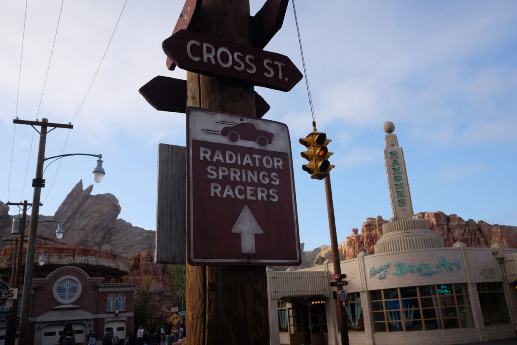 After taking in the sights and sounds of the park, we made our way to our first ride of the day – Radiator Springs Racers located in the iconic Cars Land section of the park.