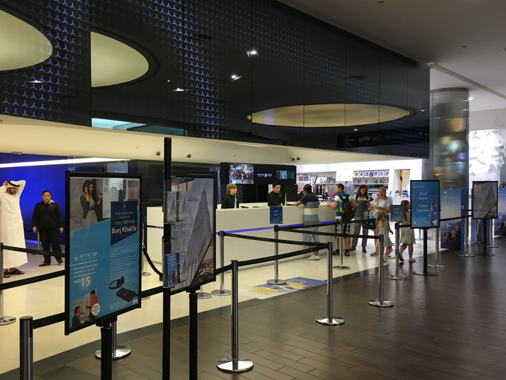 The entrance to Burj Khalifa is on the ground floor through the Dubai Mall. You present your ticket to the staff and there is a photo opportunity with a Burj Khalifa character that our children loved. We had read on the internet prior to our trip that there were long queues but we experienced no queues on the afternoon that we visited.