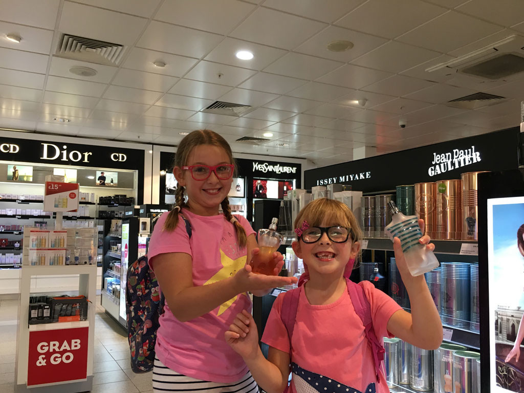 At Heathrow Terminal 5 we loved the Hamley’s toy store where we picked up some last minute toys for the plane whilst the iPads on display at Dixons stores are always a popular stop off for children to play the latest games. A favourite activity for the girls when passing through the duty free section is trying on their favourite perfumes.