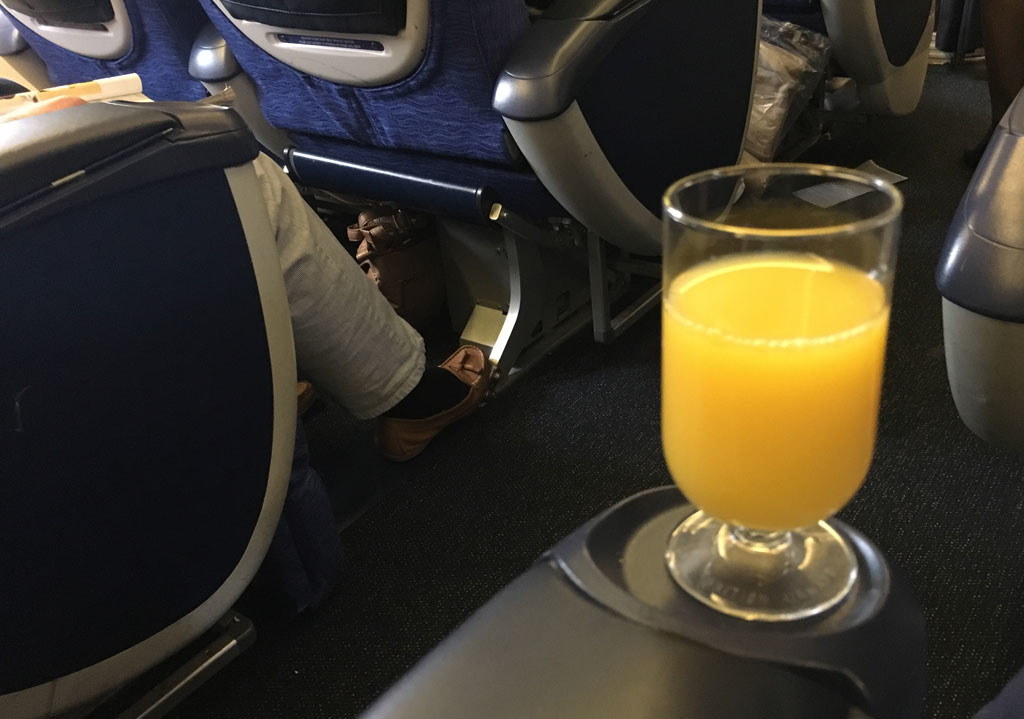 The drinks table between each seat was handy to keep our drinks on without pulling out the tray table like you have in economy.