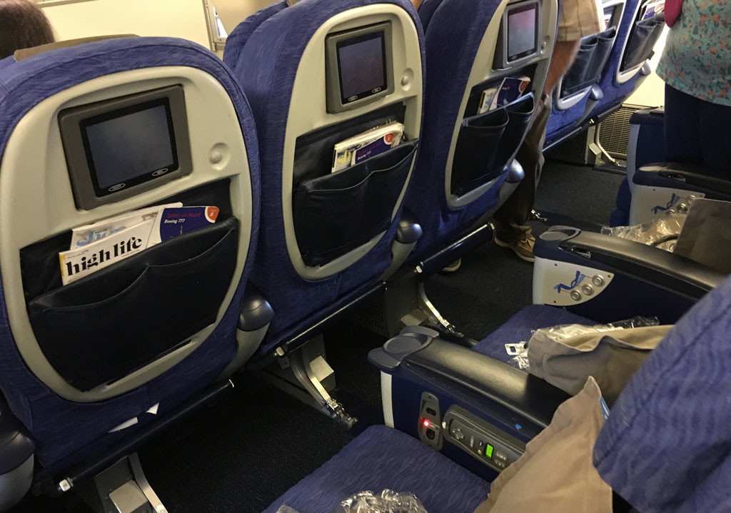 - Seat pitch of 38 inches, 7 inches more leg room than in economy.