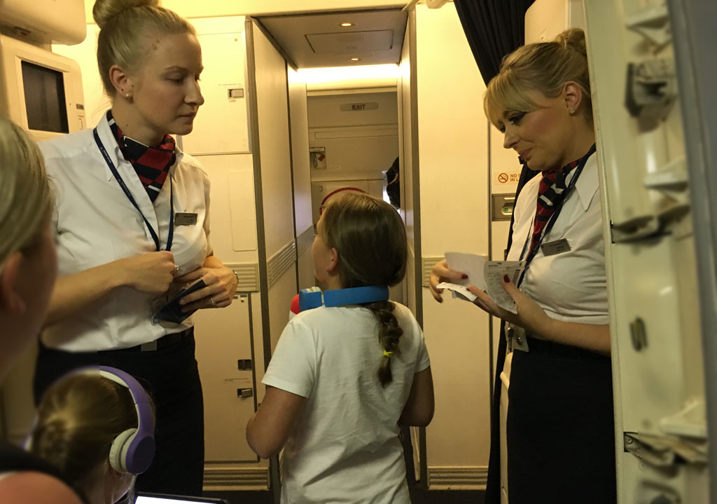 Once on board we had a nice warm welcome from the flight crew and the girls gave one of the attendants their BA flight books for the captain to sign.