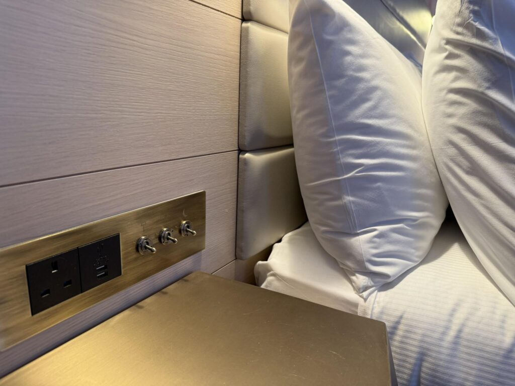 Each room featured a large flat-screen TV with casting capability, alongside plenty of USB ports and plug sockets by both the beds and the desk. A small desk area in each room also makes it easy to work if needed.