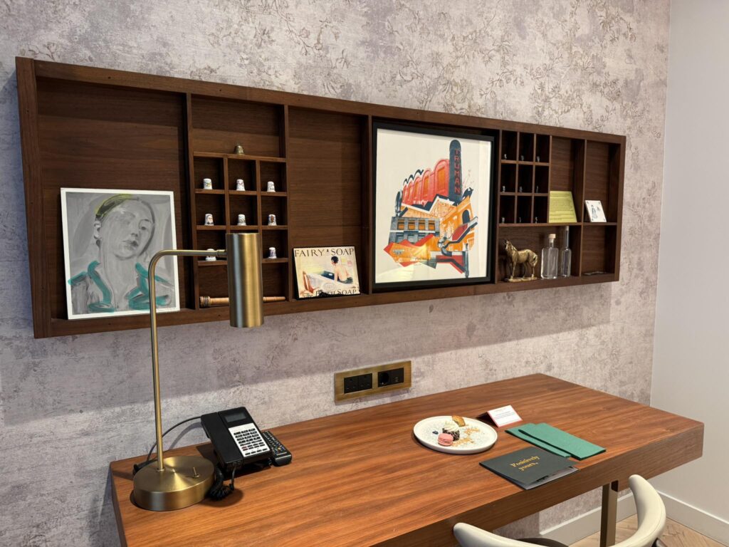 Much like the rest of the hotel, the rooms are very different from what you might expect from a traditional Hilton property. Boutique styling is evident throughout, with quirky decorative touches including small art pieces, vintage-style objects and curated knick-knacks such as thimbles, miniature horse figures, keys and egg cups. It’s unusual, but it adds welcome character.