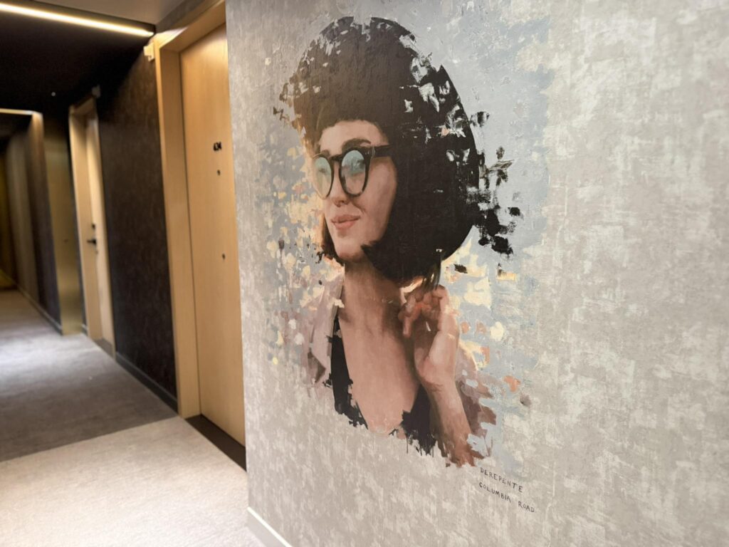 The hotel clearly draws inspiration from its local surroundings. As you step out of the lift, the hallways are decorated with colourful murals featuring portraits of East London residents.