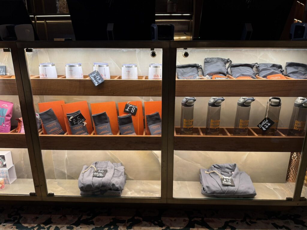 There was even a small display cabinet beneath the check-in desks showcasing Canopy-branded products.