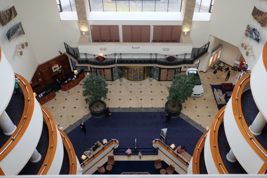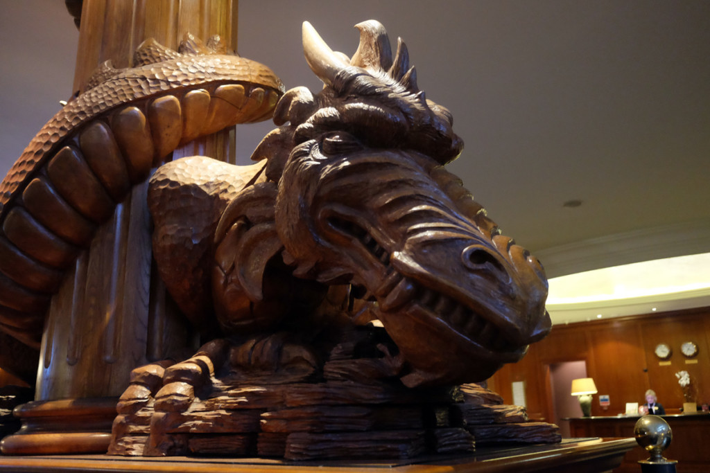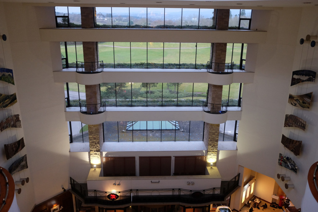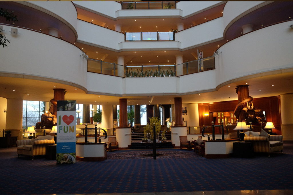 The towering atrium lobby is very modern and luxurious, flooded with natural light. What catches your eye as you enter are the two impressive Celtic dragons expertly carved from wood which straddle either side of the lobby adding to its elegance.