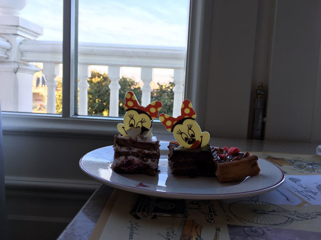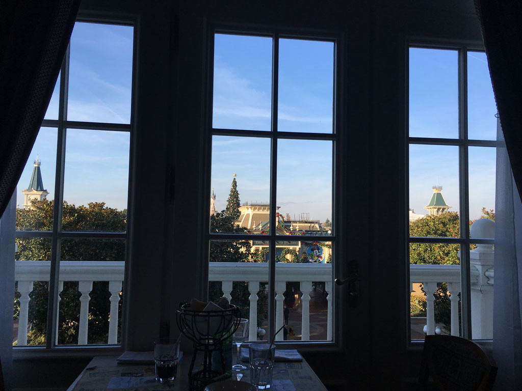 From our dining table we had great views through the window of the Disneyland Park, where we could see main street station, the tops of the buildings of Main Street USA and the Sleeping Beauty Castle.