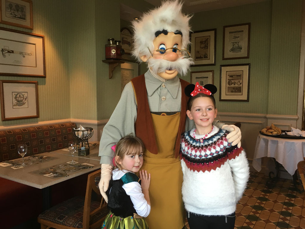 By the end of the meal at Inventions we managed to see eight characters, Captain Hook, Rafiki, Pluto, Eeyore, Goofy, Daisy Duck, Donald Duck and Gepetto. Unlike the character meet & greets in the parks where you often feel rushed because there’s a big queue behind you, at Inventions you have plenty of time to interact with the characters.