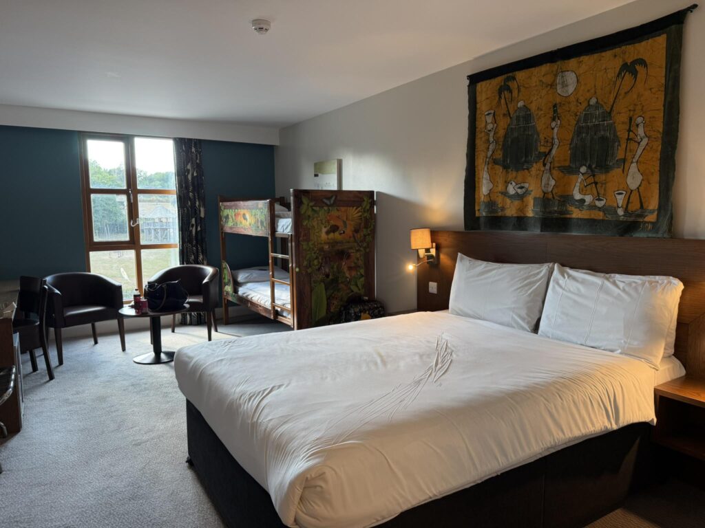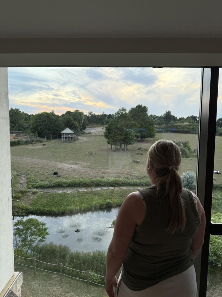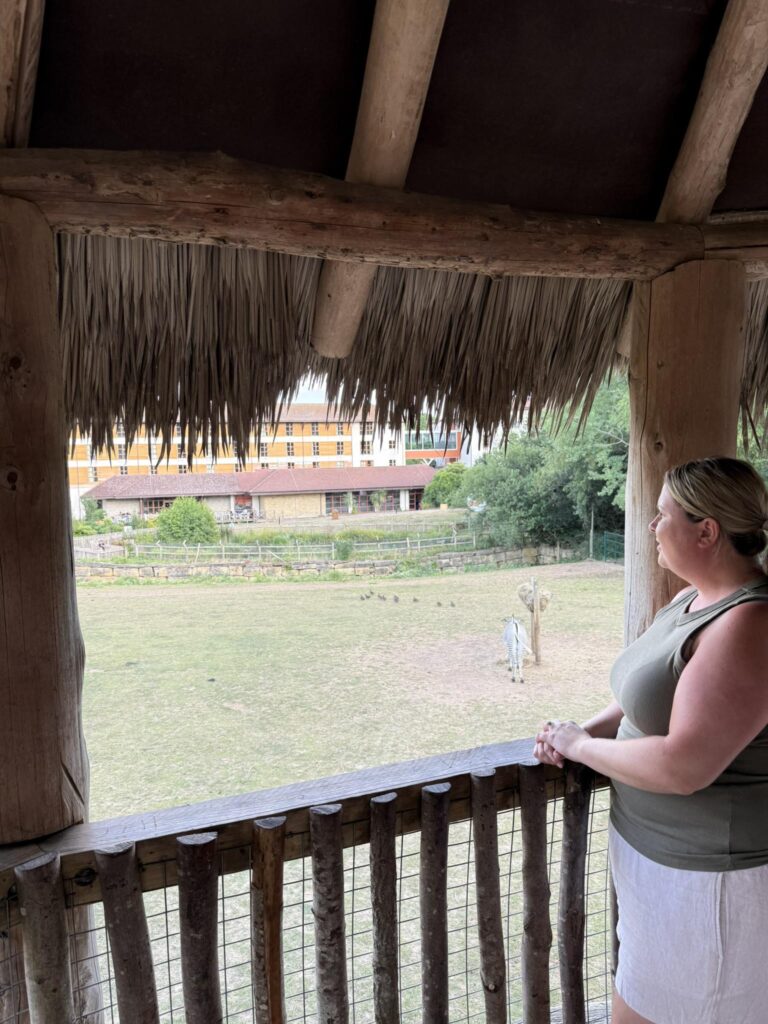 We arrived in the late afternoon and spent our first evening exploring the hotel and grounds. One of the best perks of staying at the resort is access to the Wanyama Village between 6pm and 8pm, where hotel guests can stroll along the elevated walkways and pathways and enjoy up-close views of some of the animals on the reserve. It’s peaceful, scenic, and a lovely way to unwind after a busy travel day navigating both the M4 and M25!