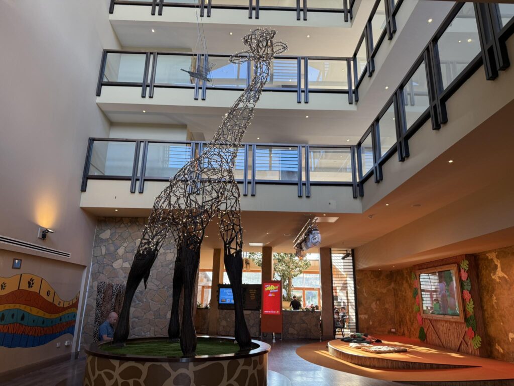 The hotel itself is designed with families in mind, and the safari theming is exceptional, it’s the closest you’ll get to Animal Kingdom lodge without going to Florida!