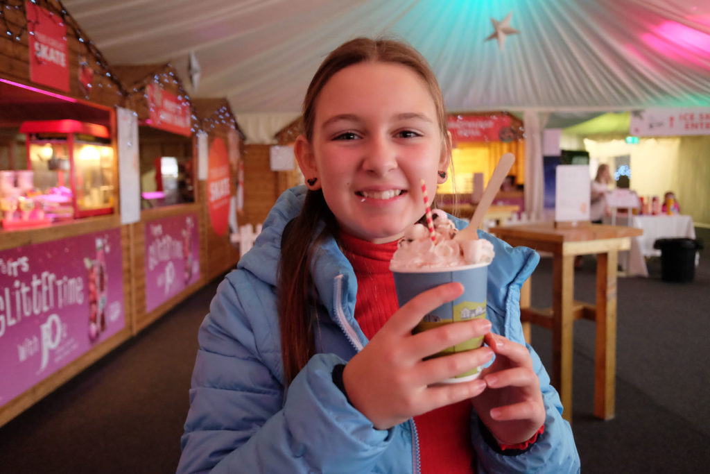 After finishing our skating we warmed up afterwards with delicious hot chocolates which was served with lashings of cream and marshmallows much to the delight of Chloe and Holly.