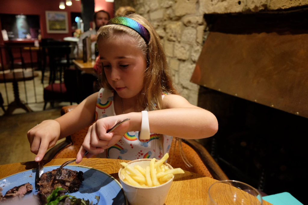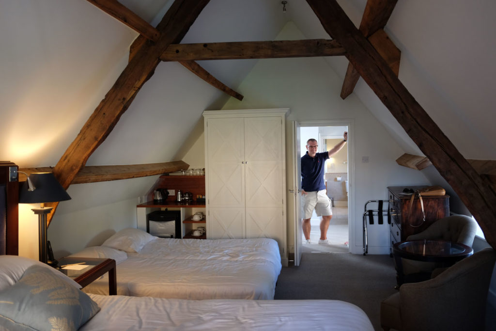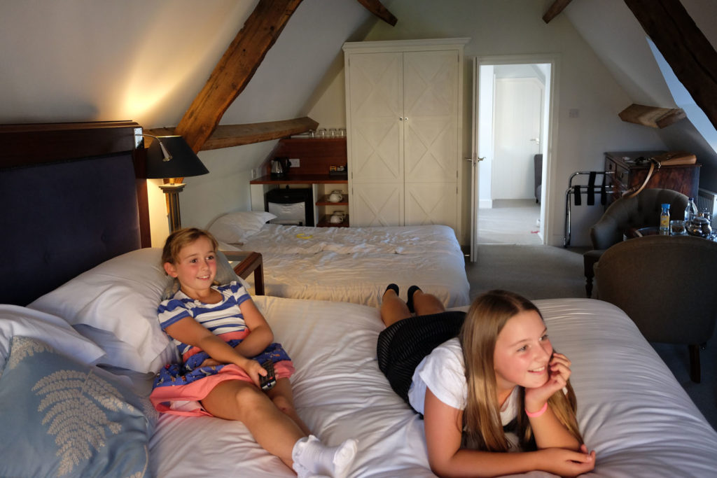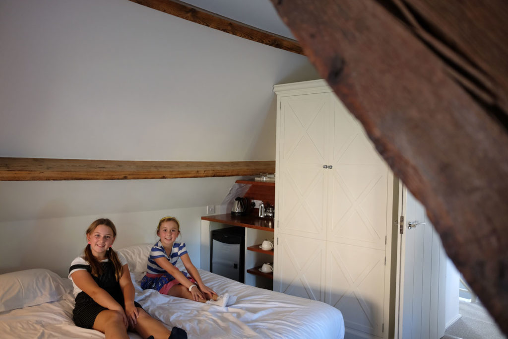 For a 16th century cottage the hotel has cleverly ensured that it has all the mod cons that families require, including plenty of plugs to charge our phones and tablets, flat screen TV, free high speed wifi and what was really important on a warm September evening – air conditioning.
