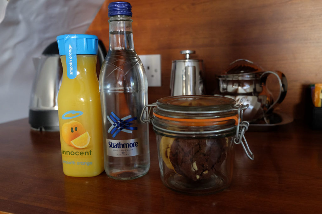 Complimentary water and juices are provided in the minibar which along with high quality tea, coffee and the jar of home-made cookies was a lovely welcoming touch, and just what we all needed when we checked in.