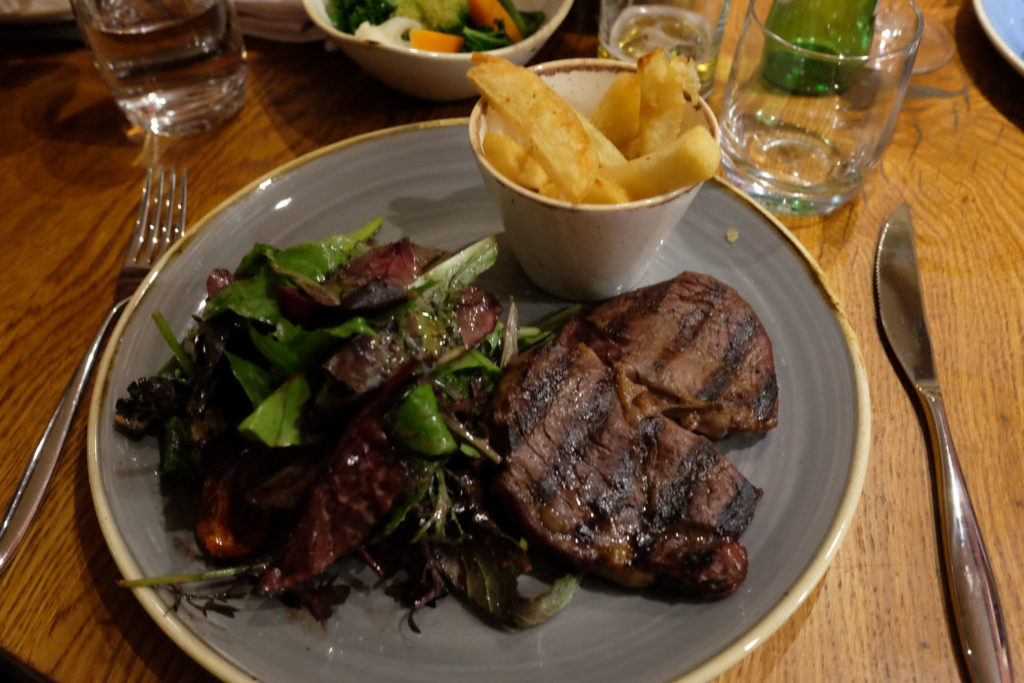 For mains, I couldn’t resist the special fillet steak with crab salad and triple cooked chips and Ian chose ribeye steak. Both meals were delicious.