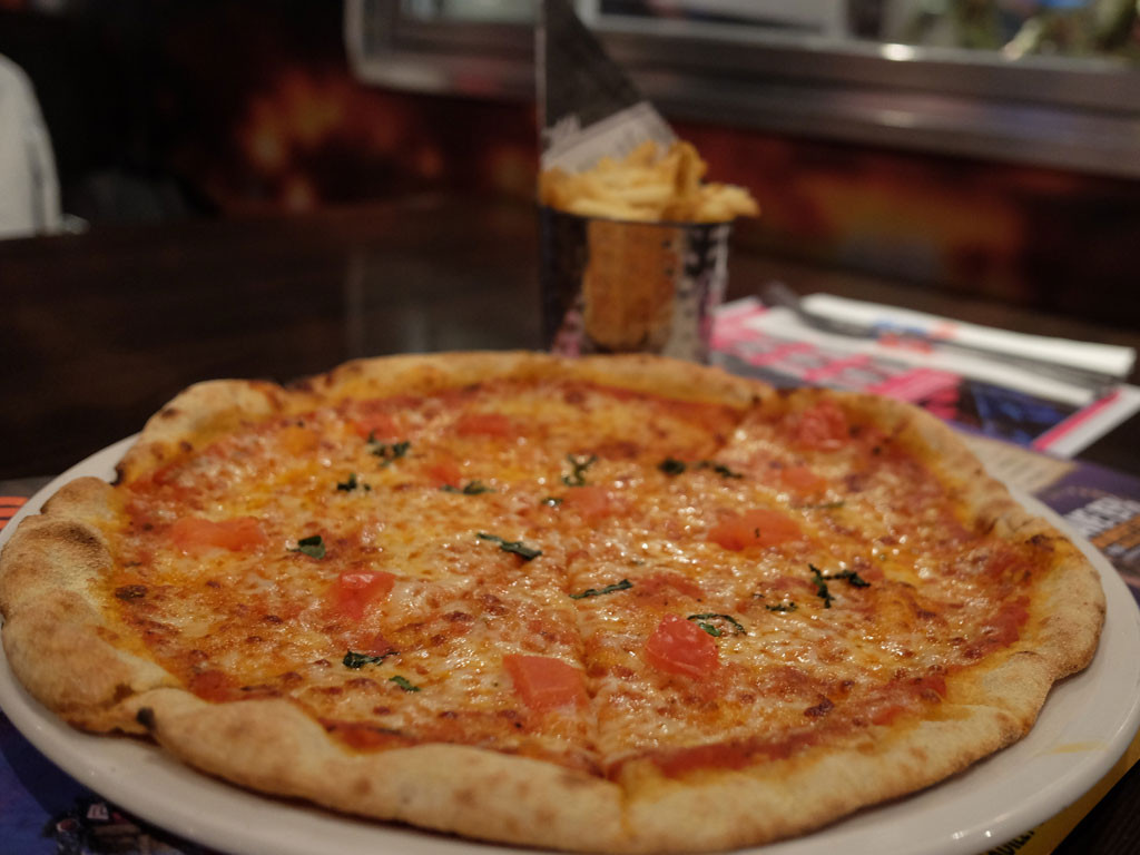 There was an excellent kids menu for £9.25 which I thought was great value as it included a main course, dessert and unlimited soft drinks. Typically Chloe would have chosen chicken crunch, but after spotting a tempting margarita pizza being brought out to other diners, she chose the pizza and fries from the adult menu.