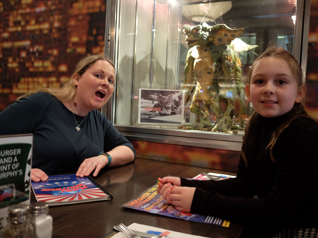 I never thought I would dine with a Gremlin, but that’s exactly what we had at our table, as we were seated at a really cosy booth underneath one of the iconic Gremlin characters from the hit movie.