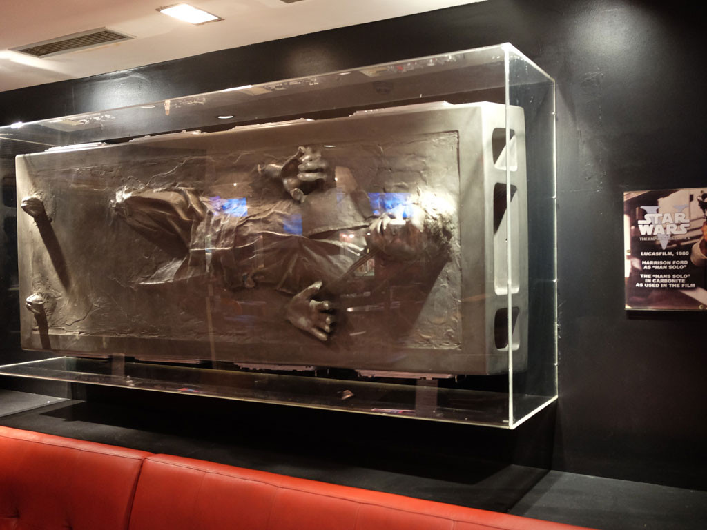 While we waited for our main course we explored some of the movie memorabilia on display. We spotted a coat worn by Bruce Willis in Die Hard 2 and an amazing replica from The Empire Strikes Back of when Han Solo was in carbonite.