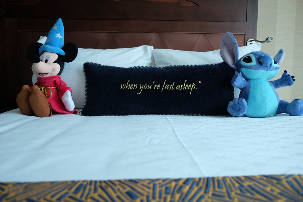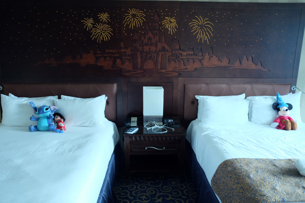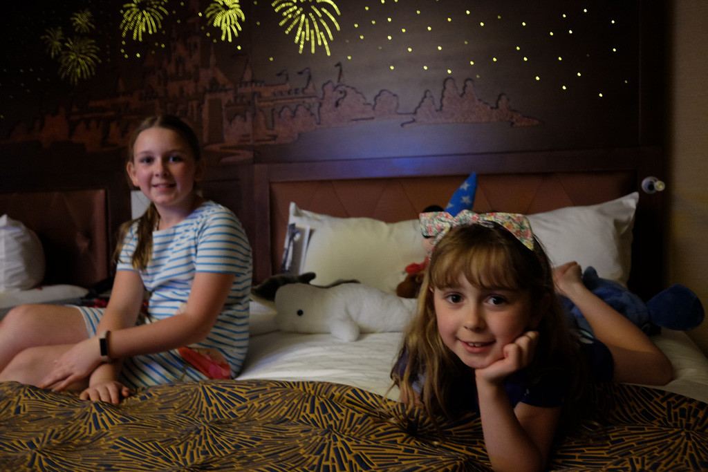 As we flicked the switch by the bedside lamp, the headboard lit up to mimic stars in the sky and the iconic Disney fireworks over the castle with the “When You Wish Upon a Star” music playing in the background.