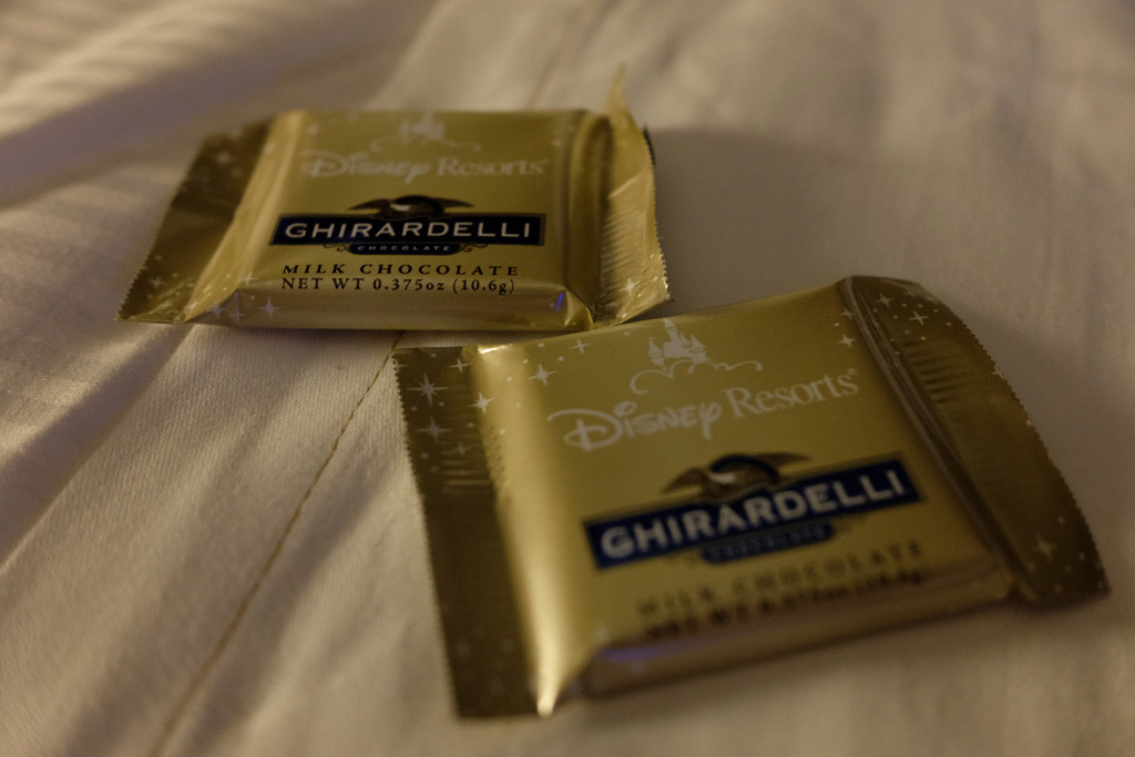When you stay at the Disneyland Hotel it’s the little touches that make a difference, including a towel art swan on our bed at turn down and the girl’s favourite Ghirardelli chocolate left on each of our pillows.