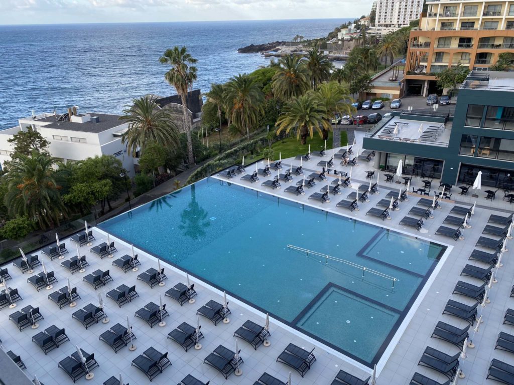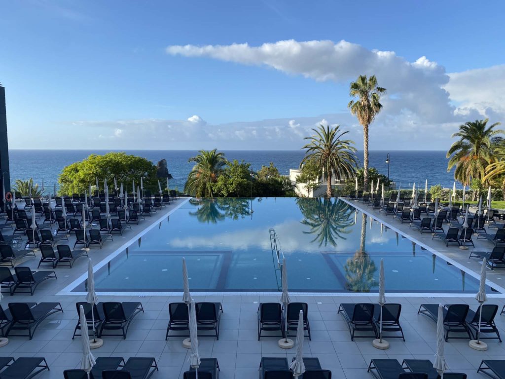 Just steps away from the Atlantic Ocean, this is one of the best hotels in Madeira, with three restaurants, three bars, a café, spa and two pools.  Whether we were lounging by the pool, or looking out from our room, we were always aware that we were by the sea, and loved its location and views, especially of the iconic shark fin rock that juts out of the sea.