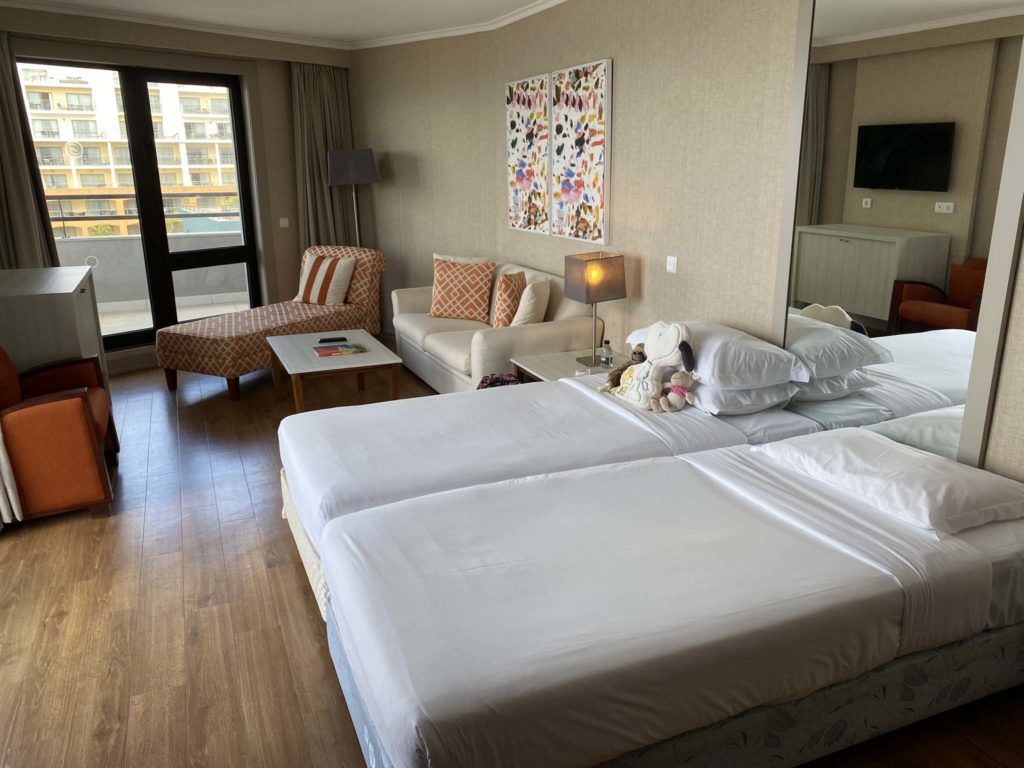 Checking in was fast and efficient and we were quickly on our way to our family suite, our home for the next seven days.  A slight disappointment was that there was no porter on-hand to help us take our luggage to our room, its something I would have expected at a five star hotel but as we arrived late at night, the hotel might have been operating at a reduced capacity.