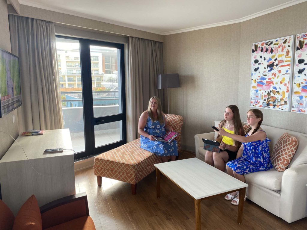 This was one of my favourite parts of the suite, where we would take in the views of the ocean and watching the sun set  whilst Chloe and Holly were happy chilling on their beds in their room taking advantage of the free high speed wifi using their ipads.