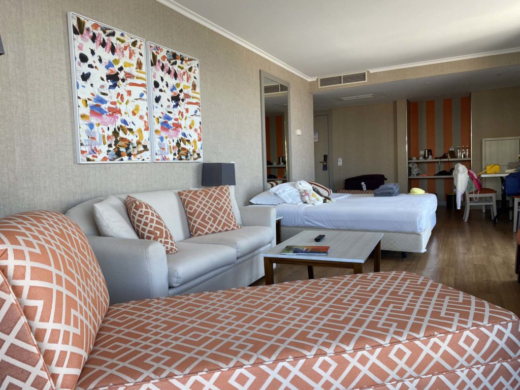 These suites are a definite step up from the standard rooms with much more space for a family of four. With a separate living room, dining table with small kitchen area, master bedroom and spacious bathroom it was a great space to call home.