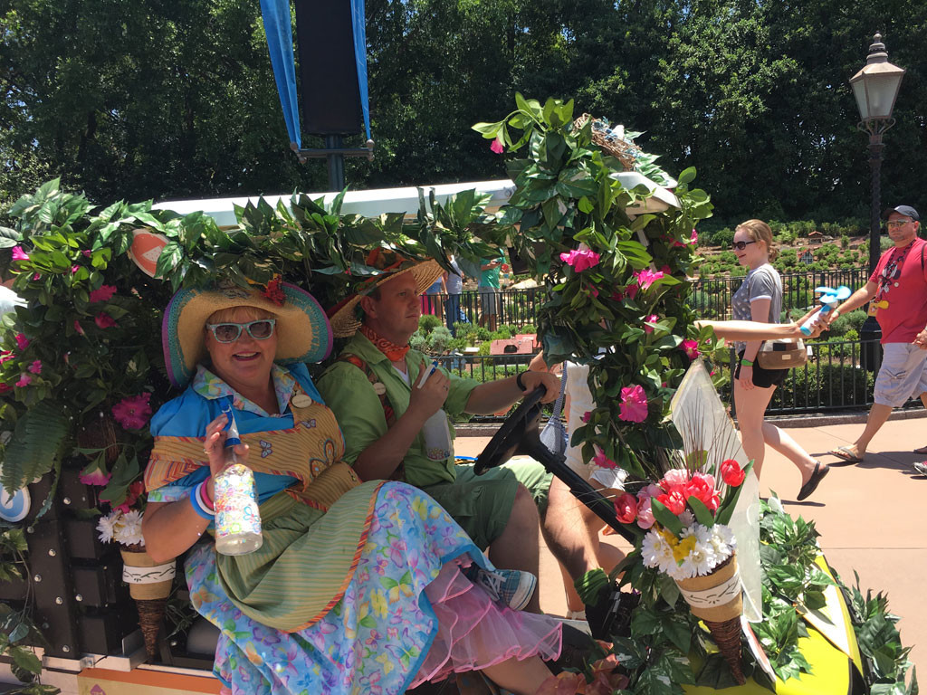 There was also lots of interaction from cast members including a flower covered car squirting people with water, which was just what we needed in the Florida heat.