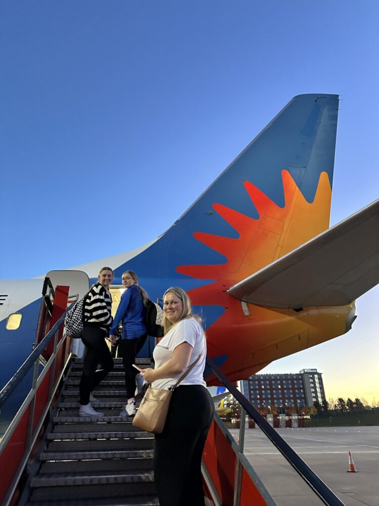 We boarded the plane via steps which always provides the perfect opportunity to get that pre-travel photo before we boarded the Jet2 plane.