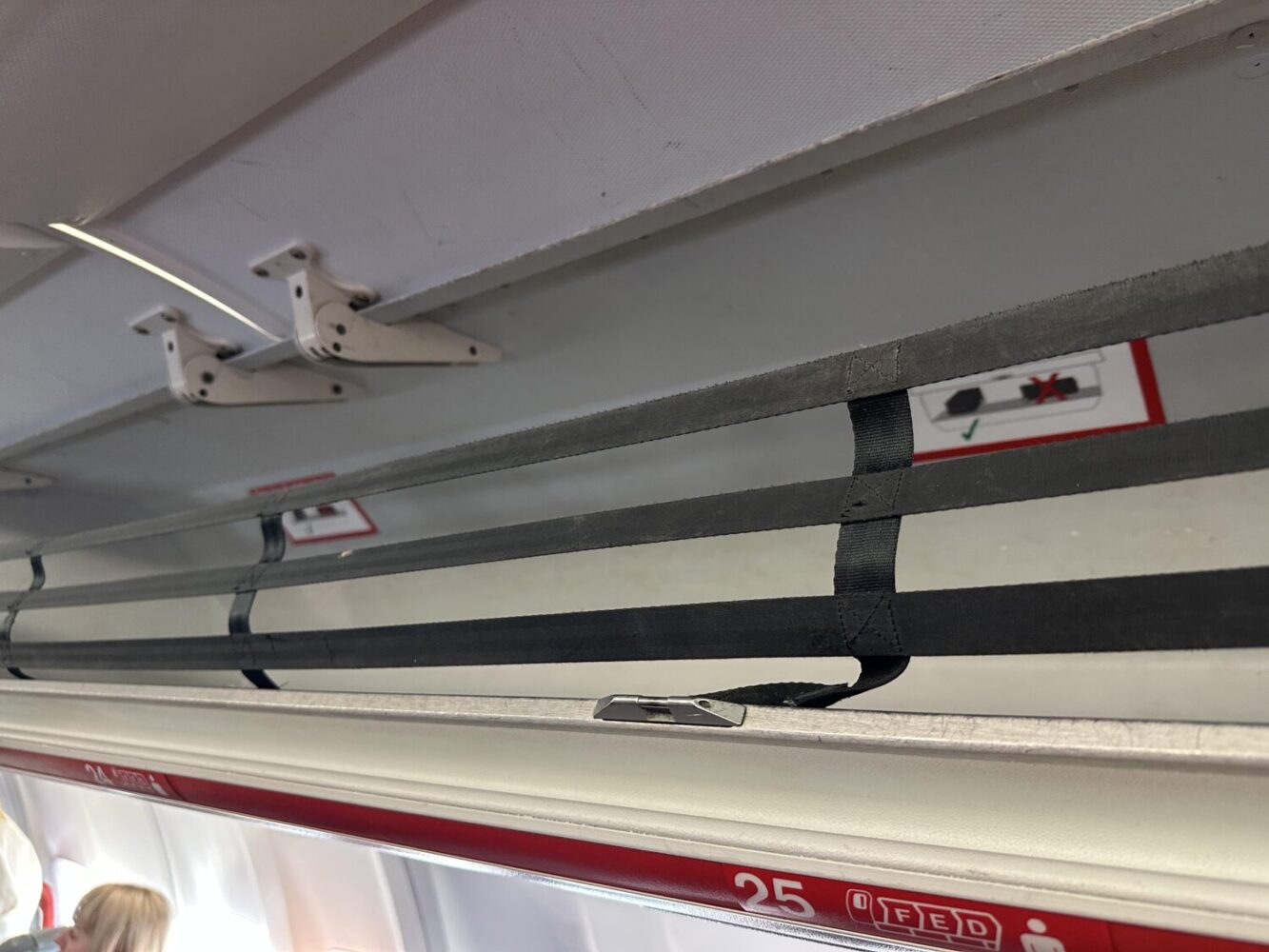 The Jet2 colour scheme really adds their personality to the cabin environment along with the destinations that Jet2 fly to listed across the overhead bins. The overhead bins were spacious with plenty of room for our hand luggage and I liked the fact that they had a net across the front to ensure that luggage is secured safely.