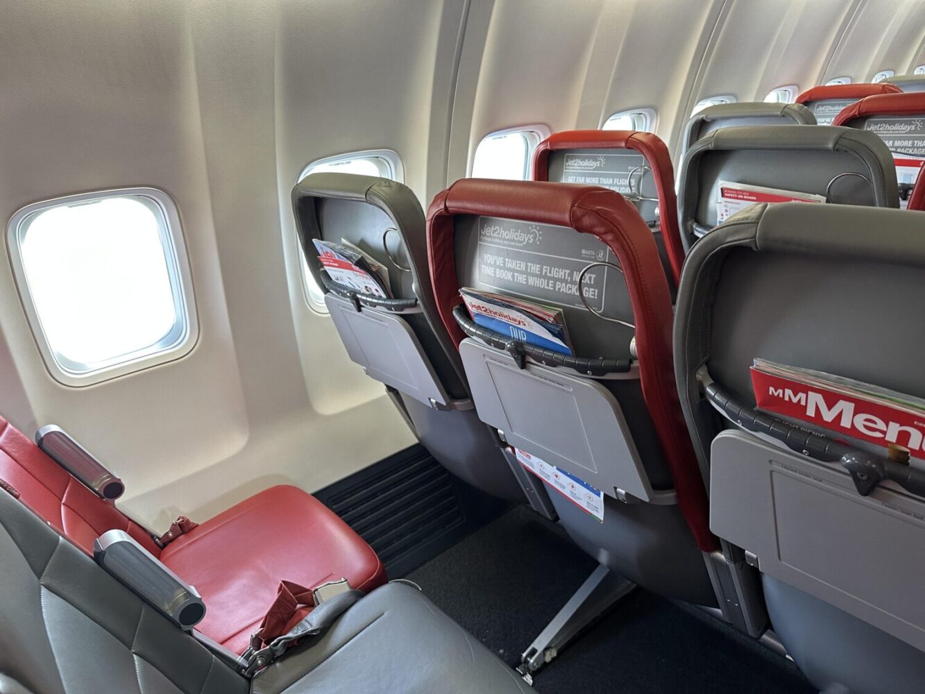 One of my pet peeves on flights is having seats recline in economy cabins, so I really like the fact that on Jet2 all seats are non-reclining so space is not intruded by a reclining seat. Like on previous flights with Jet2 we find that the legroom feels far more generous than what we have experienced with other airlines on short haul routes, this is because of the 31 inch seat pitch and 17 inch seat width providing more space and legroom compared to Easyjet and TUI.