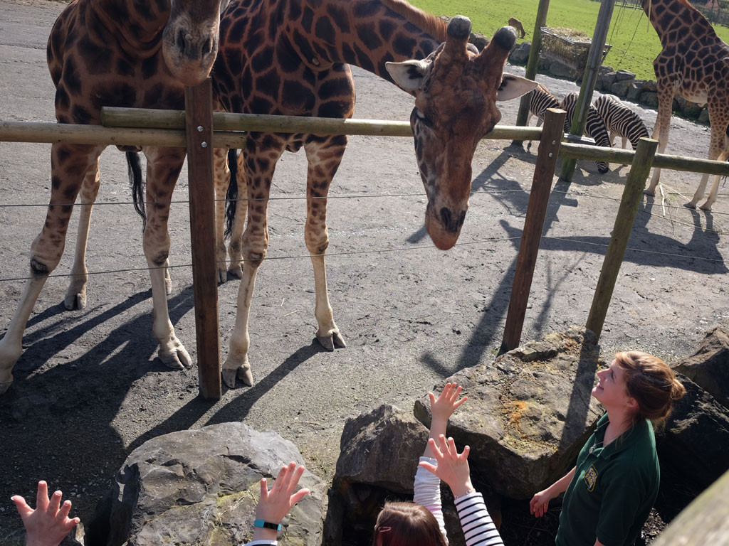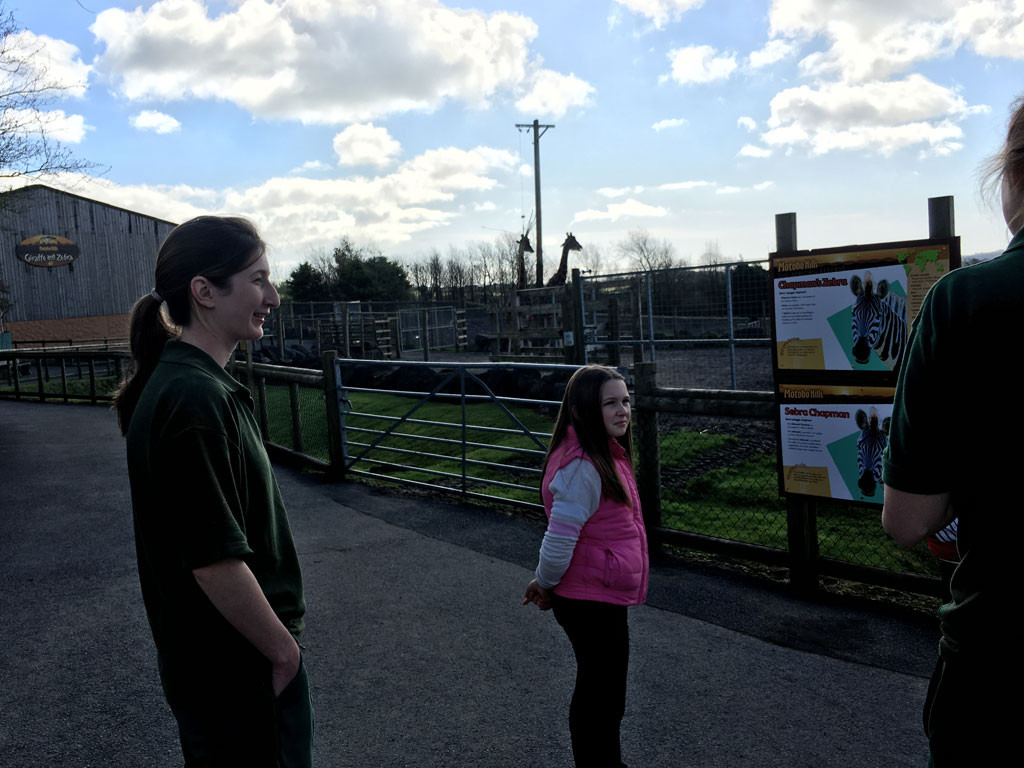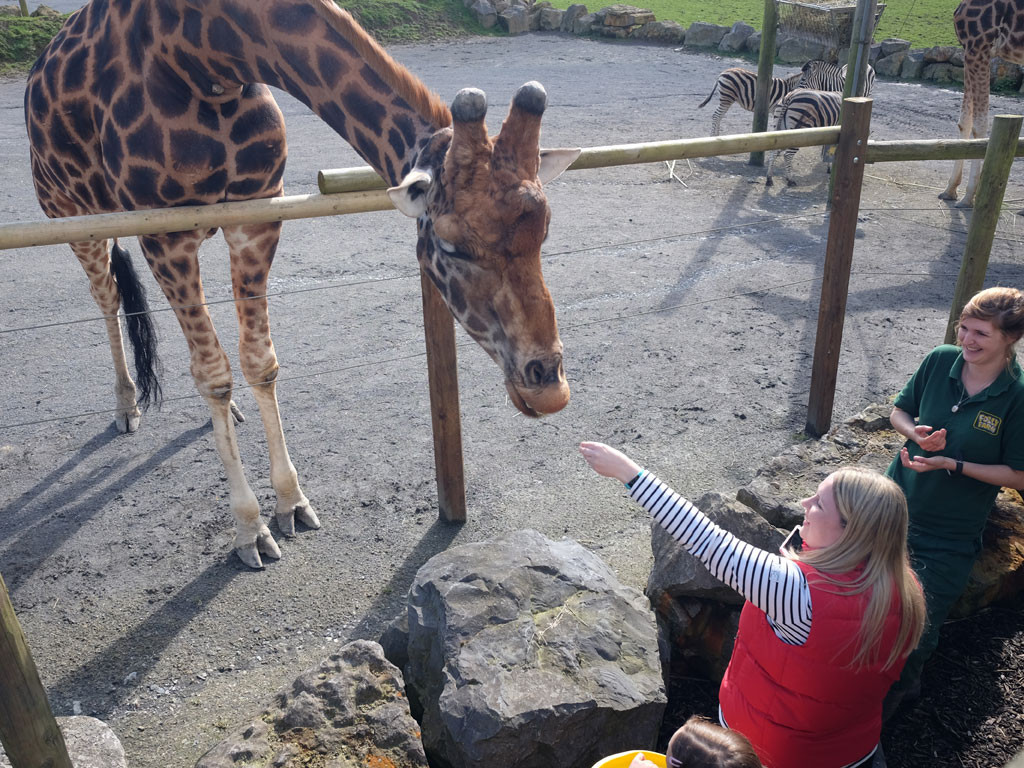 We made our way to Giraffe Heights for our 10:30am zoo keeper experience. As we approached it felt like we were in Africa not Pembrokeshire, with the faint drumming of African music in the background as we watched the giraffes, zebras and antelopes in their enclosure.