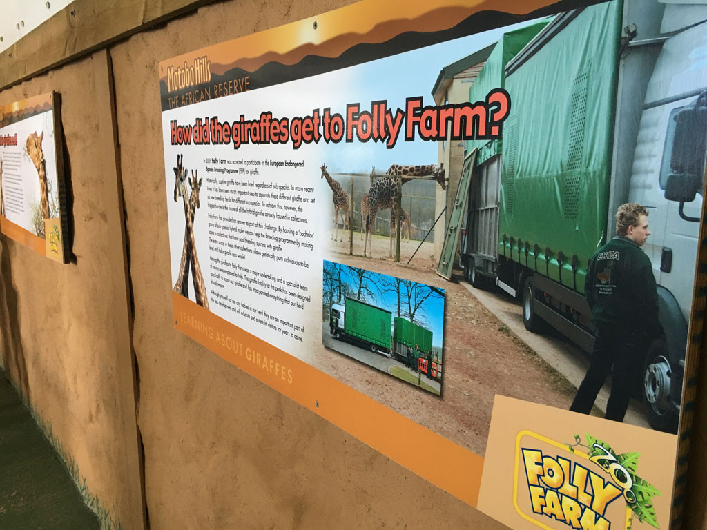 Folly Farm is home to three Rothschild hybrid male giraffes called Taharqa, Rian and Sillan and it’s the only place to see giraffes in Wales.