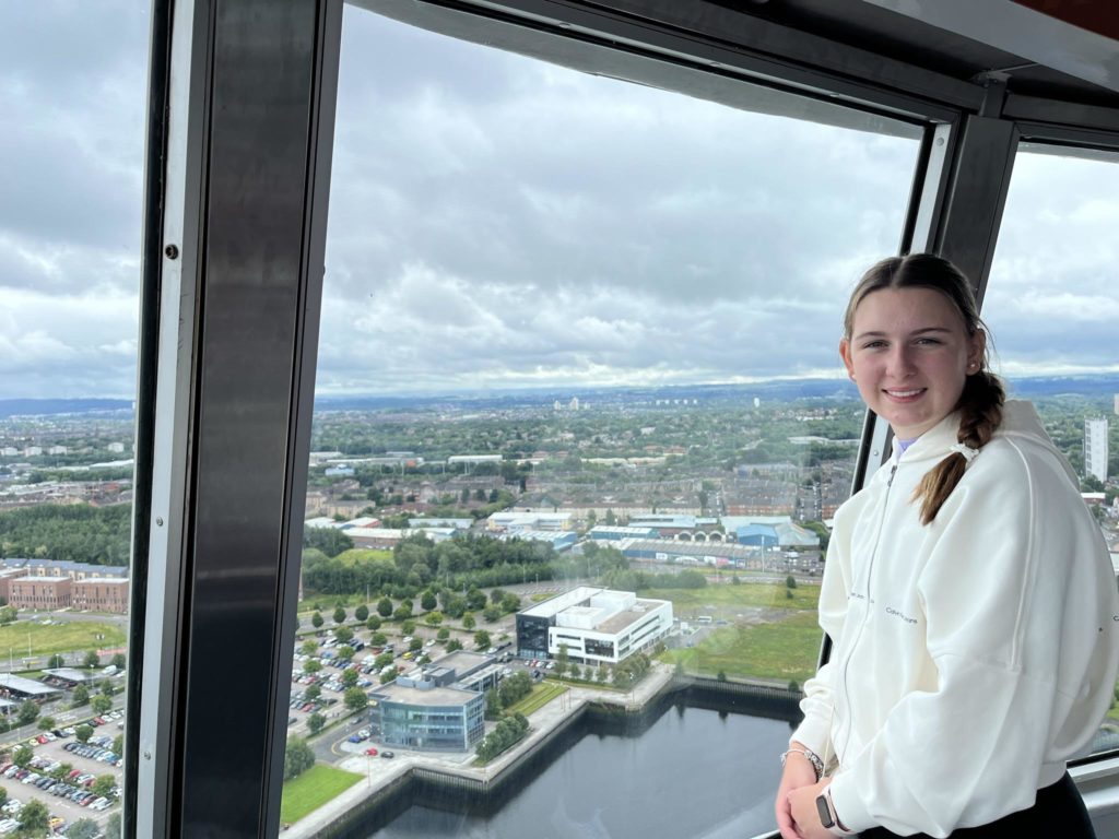 At the top you can see up to 20 miles on clear days with breathtaking views of Glasgow and its most famous landmarks.  We could see Glasgow University, Ibrox Stadium, Hydro, the city of Glasgow and the landscape beyond.