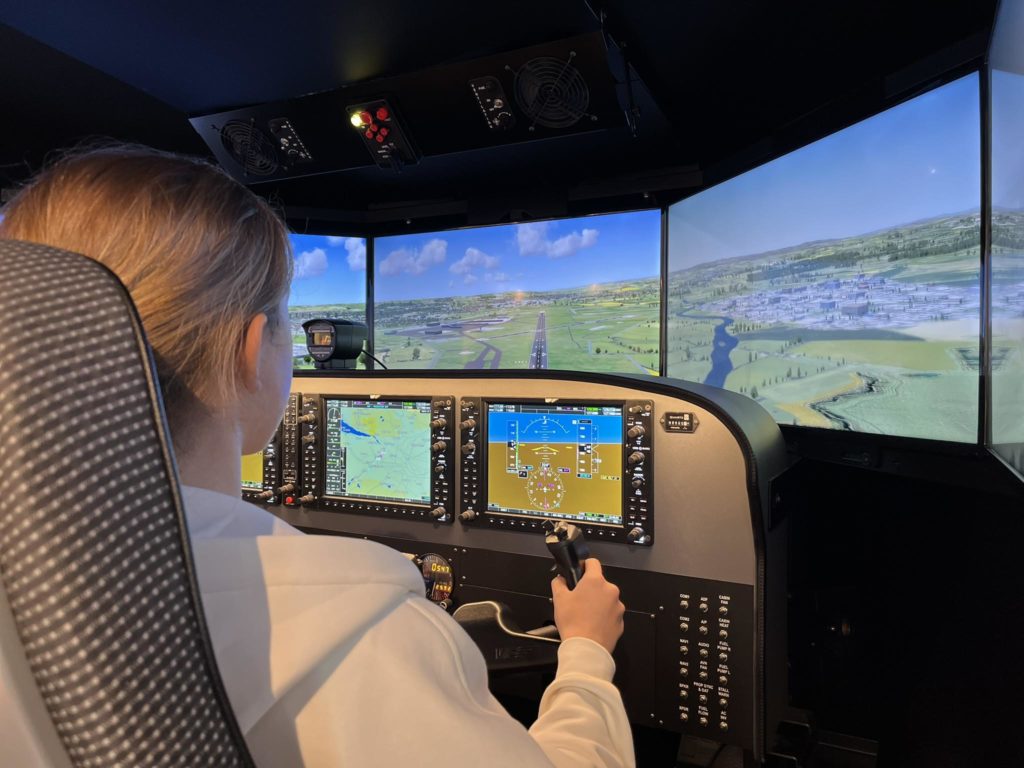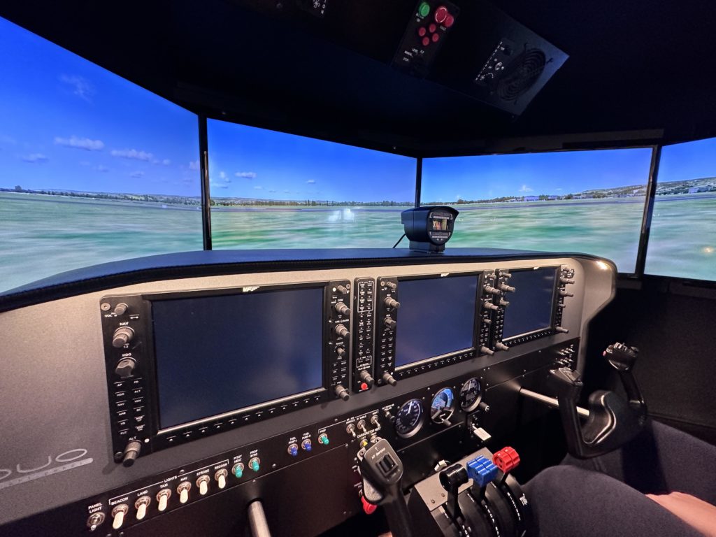 We had a flight briefing where we were taken through the basics of becoming a pilot before stepping inside the cockpit.  Inside the simulator is the closest thing you will come to actually flying a plane, with a realistic 180-degree view of landscapes generated from real map data.
