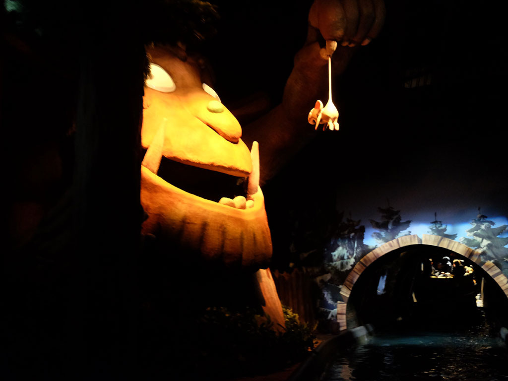 The ride ends with a splash down a little waterfall, before you sail through fountains so you will get a little wet which the girls thought was brilliant.   The sight of the Gruffalo scares fox, owl and snake back to their homes