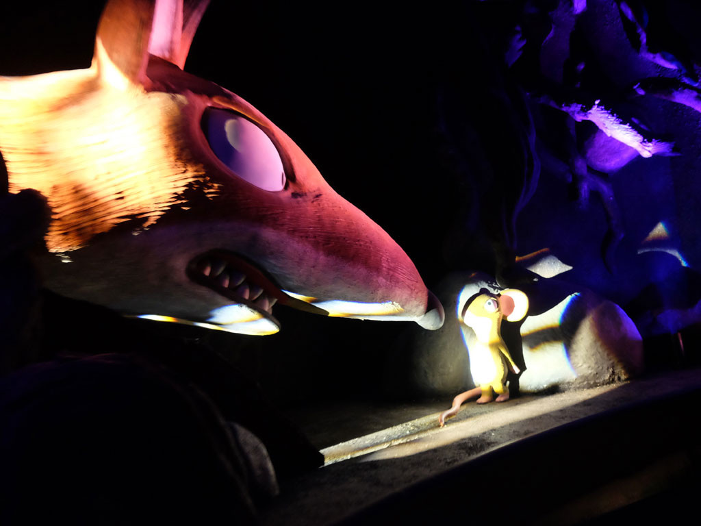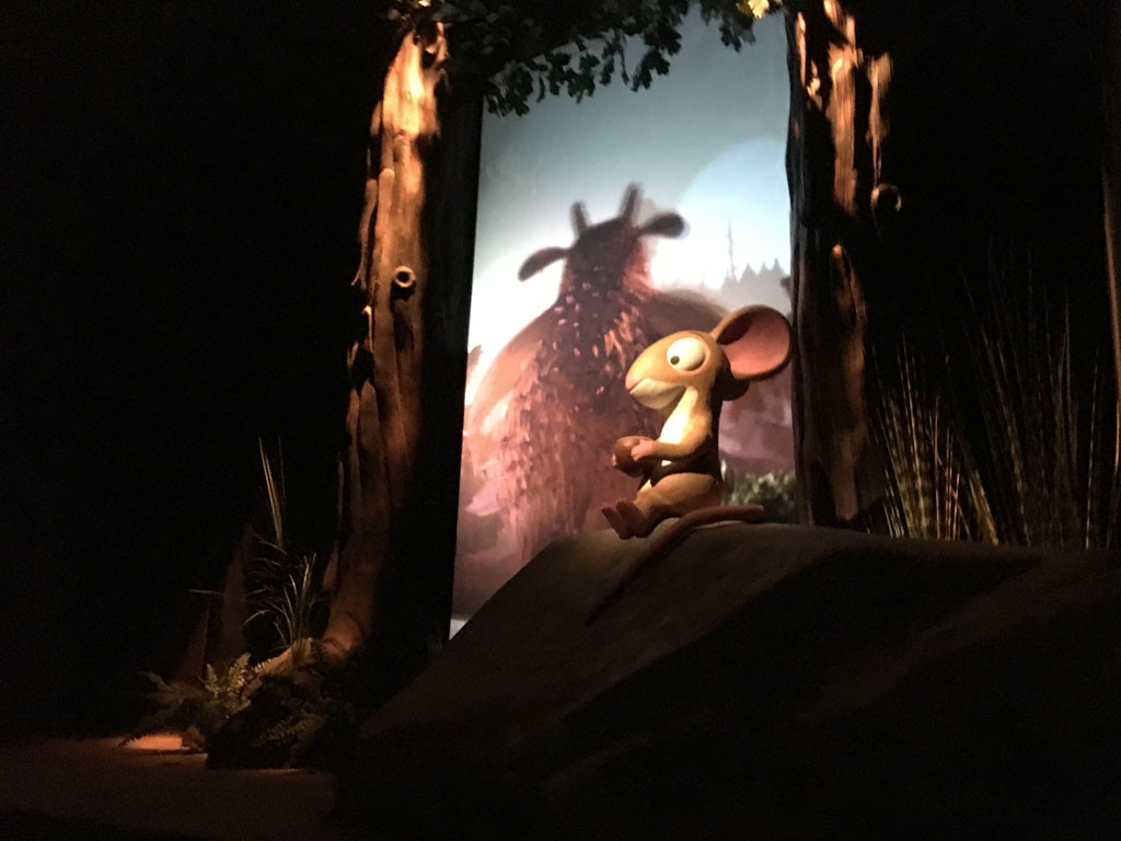 The clever use of animatronics, lighting, narration of the story, sound effects and projections make this multi-sensory ride through the deep, dark wood believable and captivating not only for the children but for us adults too.