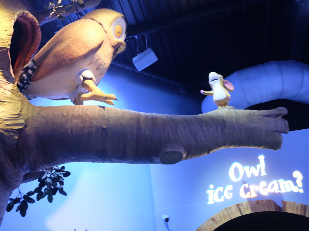 You exit the ride via a clever projection of Gruffalo Crumble, before the the Gruffalo runs away from mouse leaving him to enjoy his nut.  This section was one of the girl’s favourite parts of the ride.