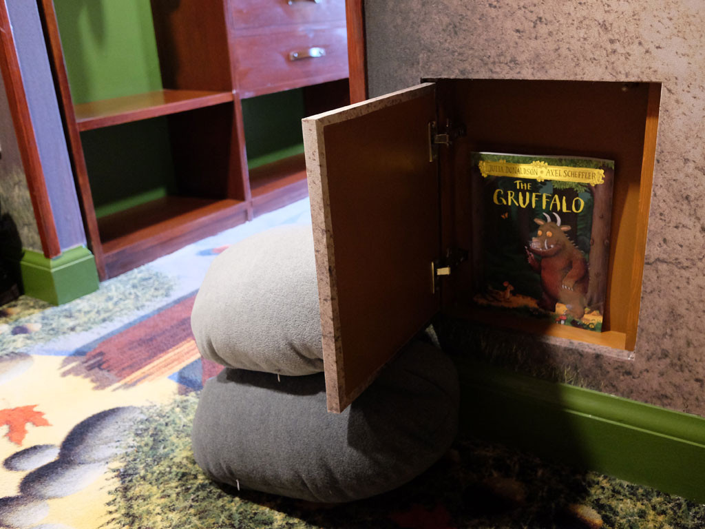 Behind the faux stone cushions on the floor was a hidden door and when you opened the door the children found a Gruffalo story book. My youngest daughter loved reading the book before bed along with watching the film from her bunk bed.