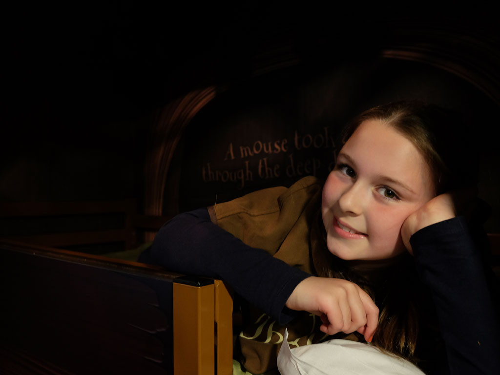 The girls loved finding the interactive elements in our room, such as the giant wooden wheel which when turned would say phrases from the book including “twit twoo” and “a mouse took a stroll through the deep dark wood”.