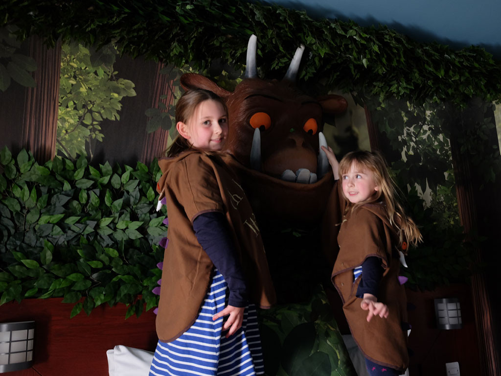A giant 3D Gruffalo head was peering through the foliage into the room. “WOW” the girls exclaimed when they when they first caught glimpse of the Gruffalo but it’s what makes these rooms so special.