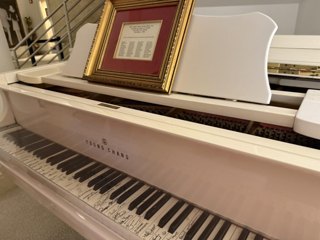 Everything in the room is white, symbolising peace, simplicity and creativity. Artwork by Lennon, photographs of him with Yoko Ono, and a loveseat where he wrote some of his most famous songs make the space feel intimate and personal. Even the piano is remarkable – a replica with over 50 keys signed by musical icons, from Billy Joel to Herbie Hancock.