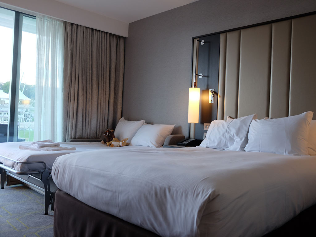 The deluxe family room, which like all rooms here at the Hilton Ageas Bowl are stylish with a very modern feel to them, complete with lots of cricket related artwork.