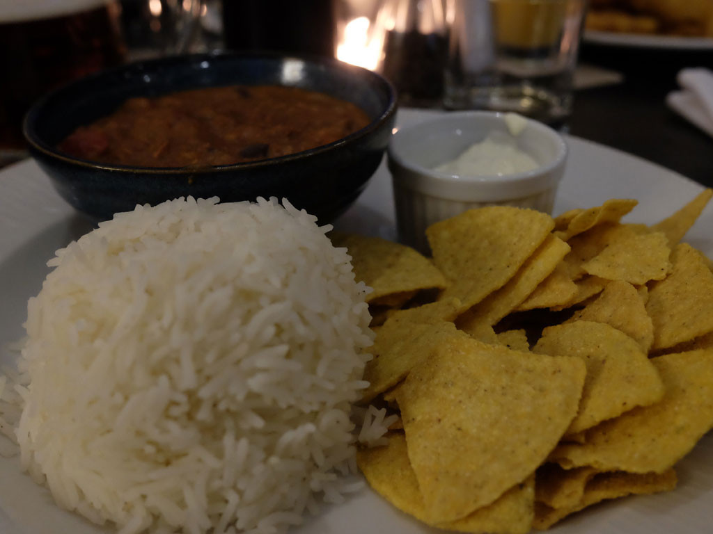 The girls enjoyed pizza and homemade crispy coated chicken nuggets and the fish and chips and chilli con carne that my husband and I ordered was delicious.