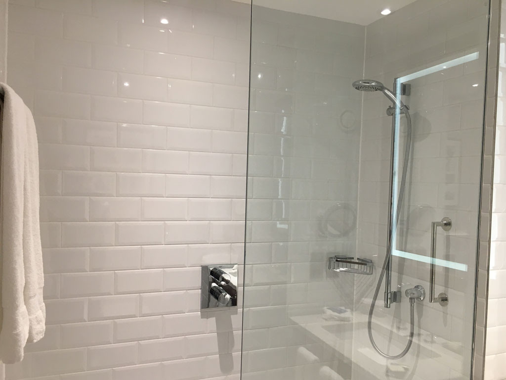 The bathrooms were modern, with a large luxurious walk-in shower, but no separate bath and an array of complementary Hilton-standard Peter Thomas Roth toiletries.