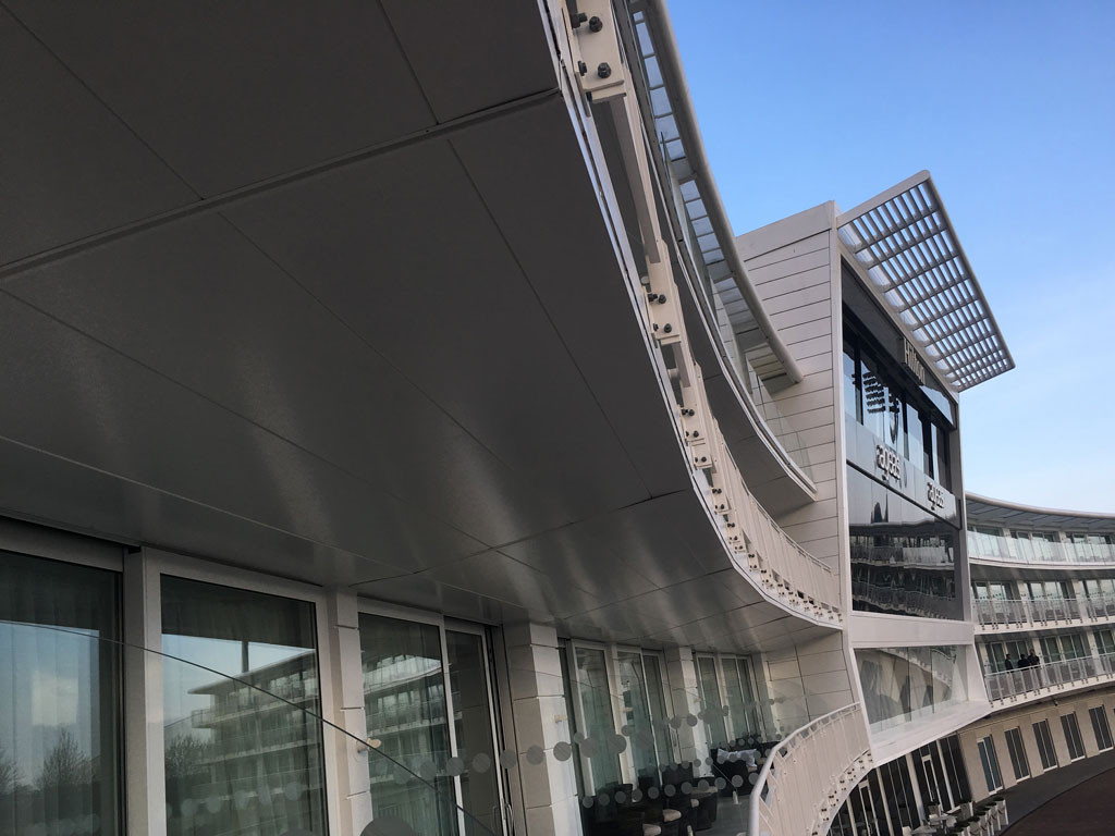 As you turn onto the drive leading to the hotel and you see the impressive Hilton hotel enveloped into the curve of the Aegeas Bowl cricket stadium you just know that you are in for a unique stay.  Car parking was complimentary and there were lots of spaces available.